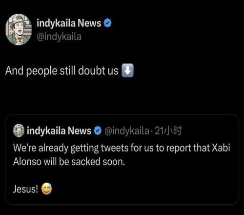 但是绿帽哥发布这则消息后,更多数人还是偏向于质疑消息的准确性。在阿隆索正式下课后,绿帽哥表示:“人们仍然对我们抱有怀疑。”