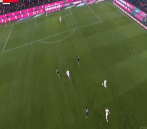 凯恩后场长传,路易斯-迪亚斯左路内切横向突破,门前顺势横敲做球,伦纳特-卡尔推射命中,3-1!