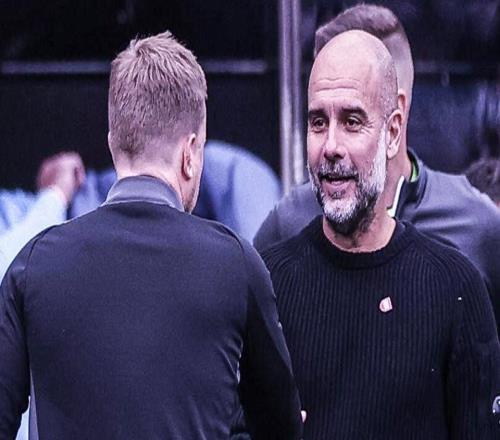 说什么呢赛后瓜迪奥拉和多库长时间交流! -